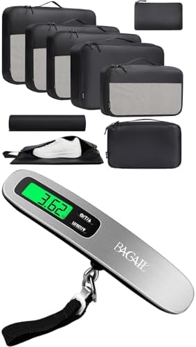 BAGAIL Digital Luggage Scale,110lbs Hanging Baggage Scale with Backlit LCD Display,Portable Suitcase Weighing Scale,Travel Luggage Weight Scale with Hook,Strong Straps for Travelers. BAGAIL Packing Cubes Luggage Packing Organizer for Travel, Suitcase Packing Bags for Travel Accessories