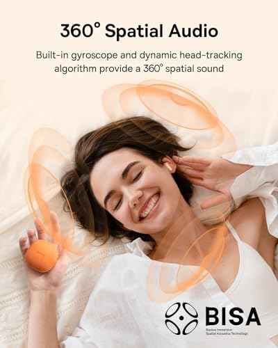 🎧【𝟑𝟔𝟎° 𝐈𝐦𝐦𝐞𝐫𝐬𝐢𝐯𝐞 𝐒𝐩𝐚𝐭𝐢𝐚𝐥 𝐀𝐮𝐝𝐢𝐨】 The built-in gyroscope and spatial audio algorithm tracks your head movements to always keep you at the center of the sound, ensure a completely 360° immersive sound experience.