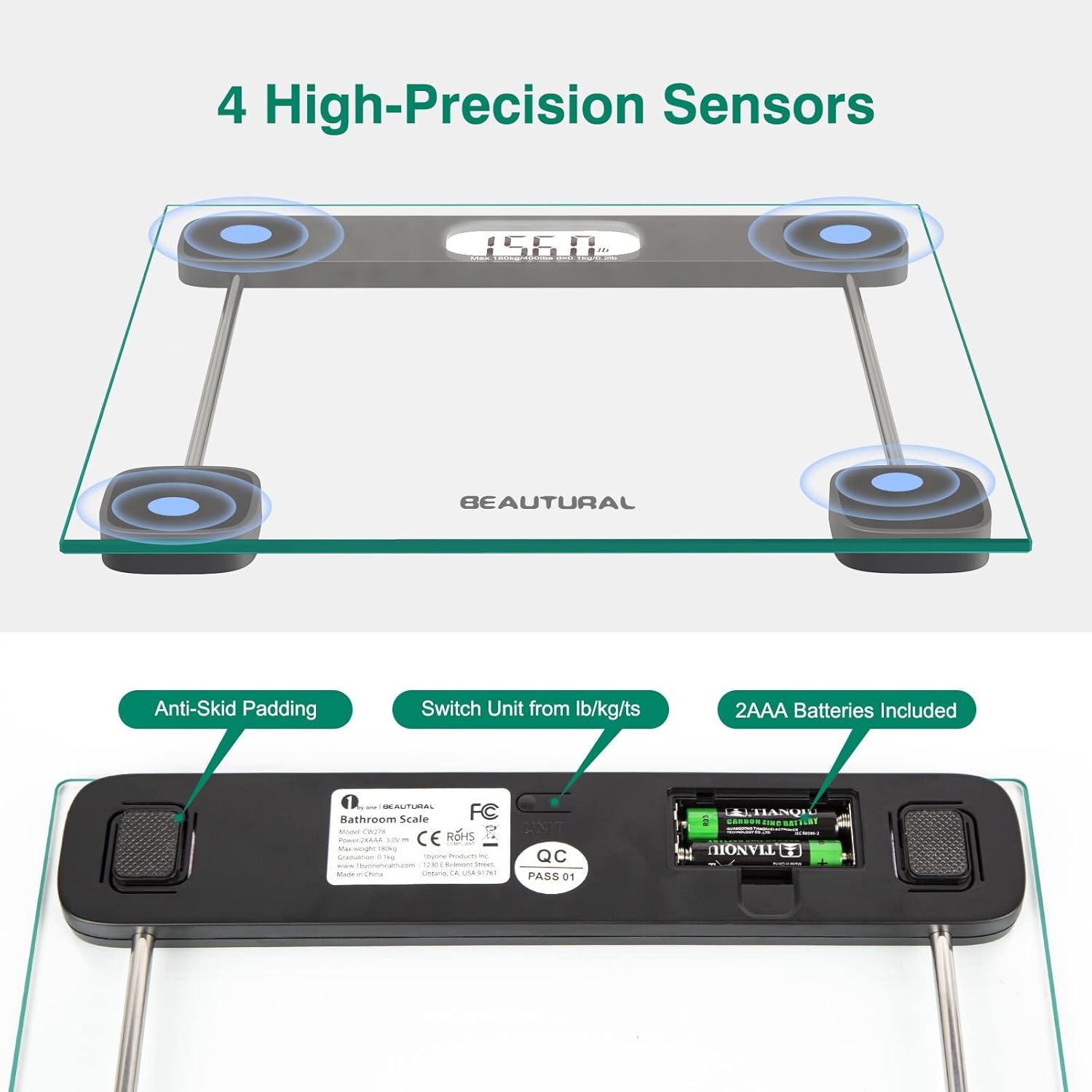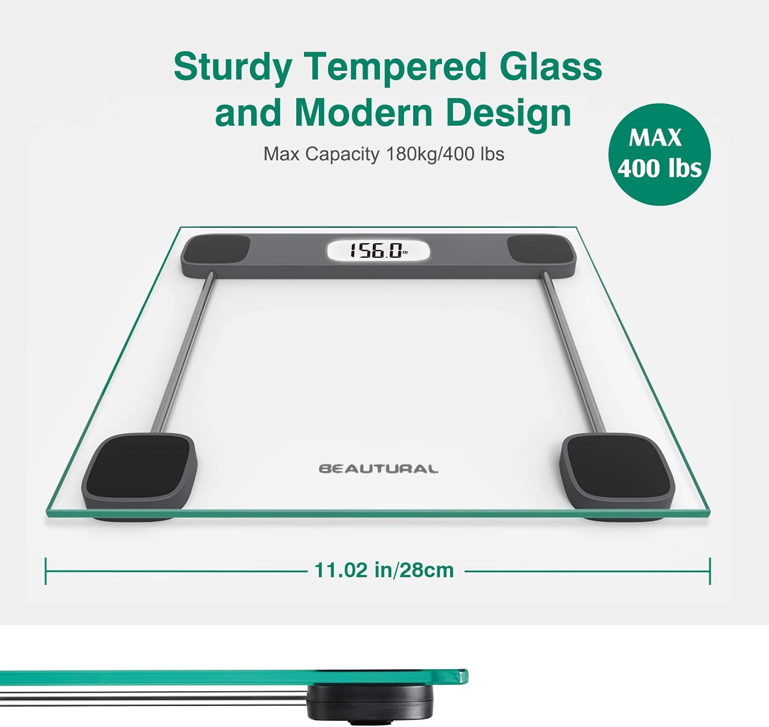 BEAUTURAL Scale for Body Weight Digital Bathroom Scale ,400 lb, Body Tape Measure and Batteries Included