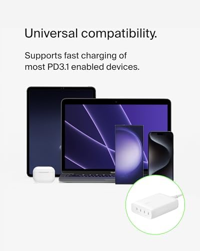 UNIVERSAL COMPATIBILITY: For the best charging performance possible, this 4-port charger supports fast charging of most PD3.1 (EPR) / PD3.0 enabled devices. Charge more and worry less by eliminating the need to use multiple charging devices at once.
