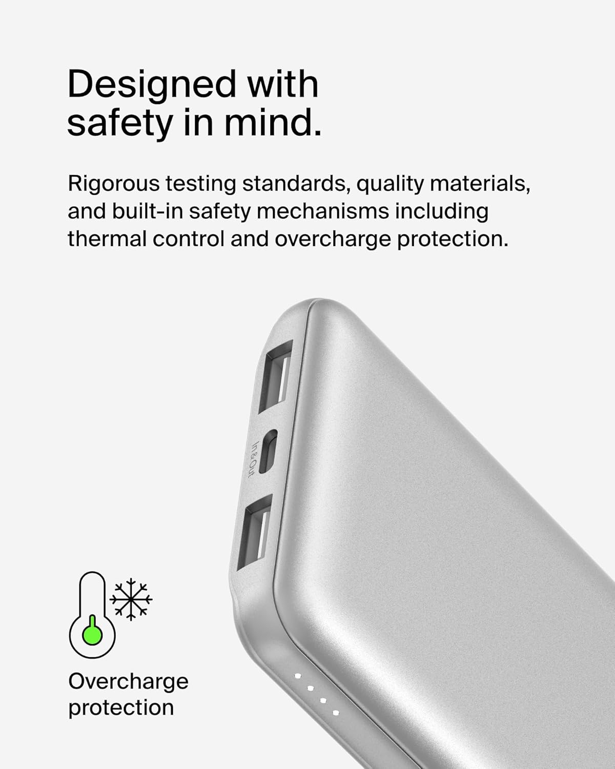 LED INDICATOR LIGHT: This Belkin power bank is designed with a built-in LED light that tells you the power bank’s status, so you always know when it’s time to recharge.