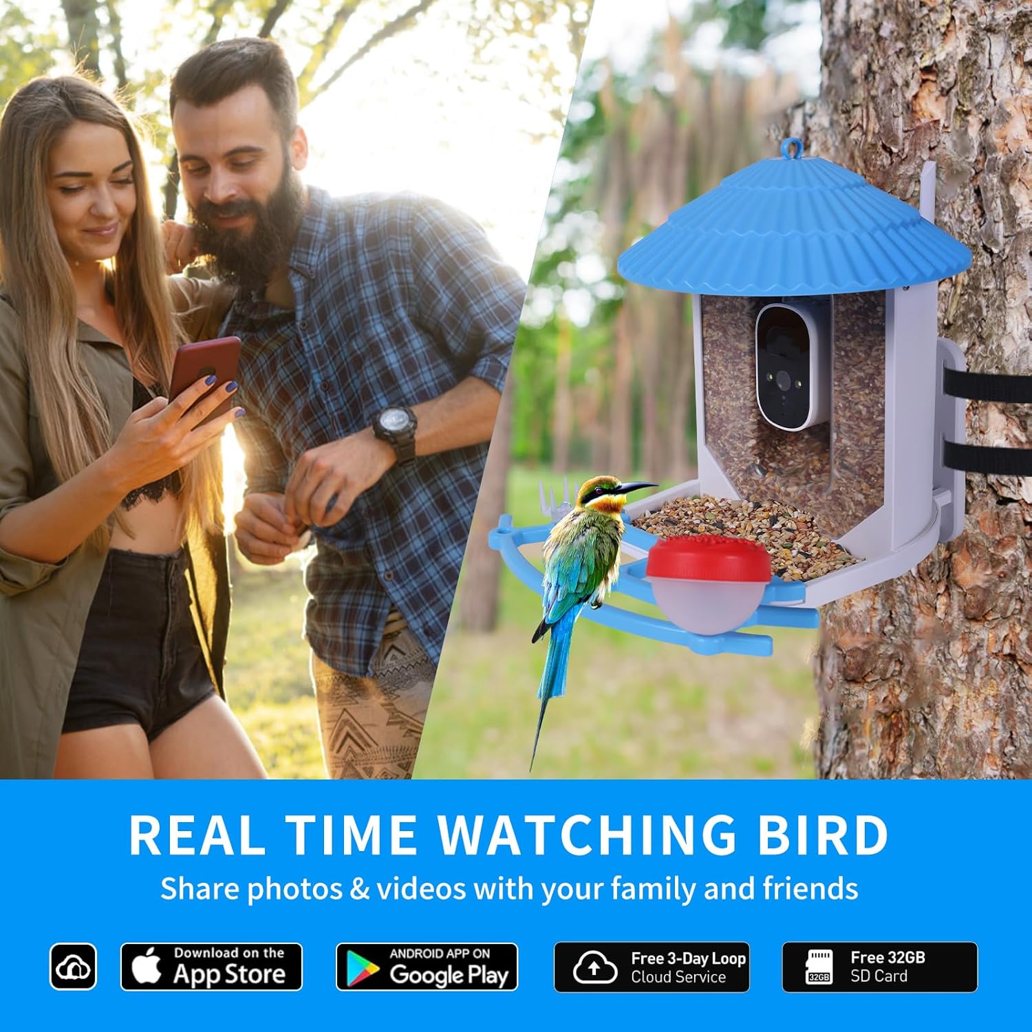 【Real-Time Bird-Watching】With Funle camera bird feeders for outside. Effortlessly capture and cherish moments with our bird feeder camera wireless outdoor, sharing in real-time with family and friends. Enjoy seamless connectivity via stable 2.4GHz facilitated by the 5dBi antenna. hummingbird feeder with camera with 32GB SD card.