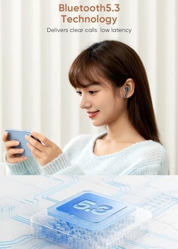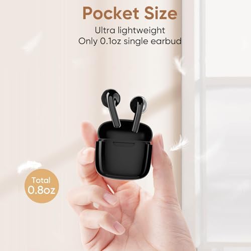🔮【New Design & Compact Size – Bluetooth 5.3】Enjoy the latest in Bluetooth tech with our earpods featuring Bluetooth 5.3. Stable Type C connection, faster speeds, lower power usage. Say goodbye to sound delays, clearer calls. Perfect for gaming or live performances. Super comfortable – each earphone weighs 0.1oz, no ear strain. Binaural set with charging case only 24.5g, compact, and easy to carry.
