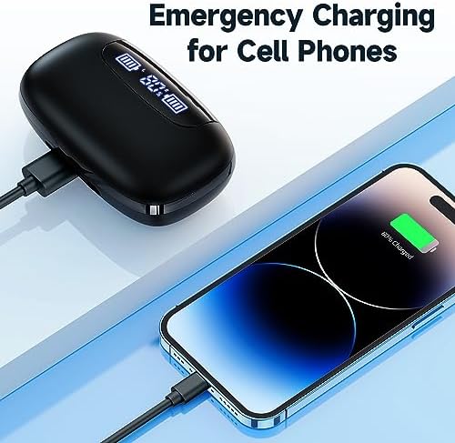 Digital Power Display and IPX7 Waterproof: The LED power display on the top of the charging case allows for effortless checking of the remaining power of the case and the charging status of both wireless earphones. These wireless headphones are equipped with an IPX7 waterproof nano-coating on their internal components, ensuring complete protection against sweat and moisture immersion. Simply place both earbuds back into the charging case and close the lid to initiate charging for both headsets.