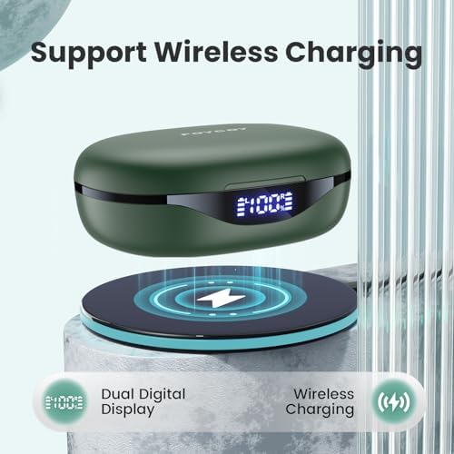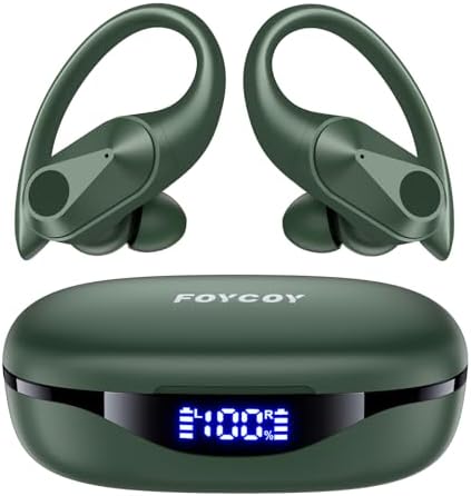 Impeccable Sound & Loud Call Bluetooth Earbuds: Equipped with 13mm speaker, the wireless headphones deliver well-balanced and exceptional sound, ensuring every note and beat is crisp and immersive. And the built-in microphone and snug fit design will effectively filters out noise during calls, guaranting seamless call quality for those important conversations on the go. Immerse yourself in crystal-clear audio and indulge in high-fidelity music with FOYCOY earbuds wireless bluetooth!