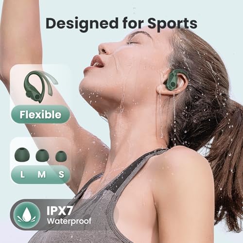 Sports Comfort & IPX7 Waterproof Workout Headphones: Designed with elastic and soft ear hooks, these bluetooth headphones stay securely in place and provide ultimate comfort even during extended workout sessions. The sports earbuds come with three different sizes of ear tips, ensuring a perfect fit for various ear sizes. With an IPX7 waterproof rating, our wireless earphones effectively resist water splashes and sweat, making them ideal for sports, fitness, workouts, and running.