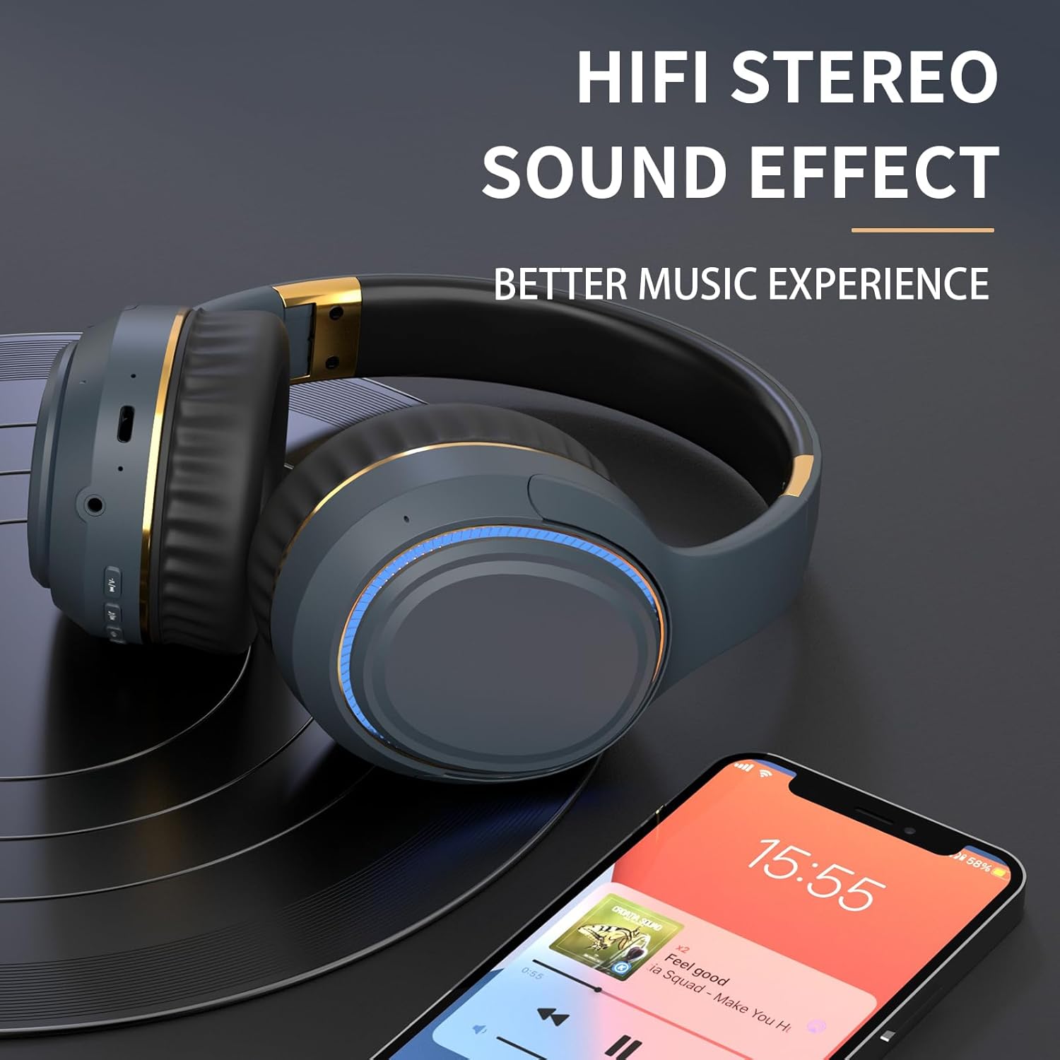 Bluetooth Headphones with RGB Lights, Foldable Wireless Over-Ear Headphones with Hidden Mic for Cell Phone, PC, Laptop, Suitable for Music, School, Workouts, and Gaming (Blue)