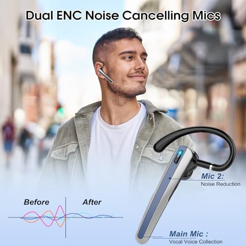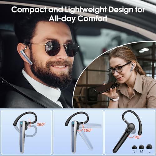 Comfortable Fit Design: The bluetooth earphone is ergonomically designed, equipped with rotating ear hooks and flip-up microphone, allowing you to easily switch between left and right ears. Equipped with three different sizes of earplugs, it can disperse pressure and ensure a comfortable fit, bringing you all-day comfort and reducing fatigue. Perfect for drivers and business professionals. With IP7 waterproof rating, it can effectively resist the intrusion of sweat, rain and other liquids.