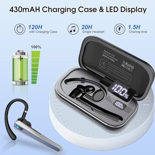 Ultra Long Battery Life: The noise cancelling headset can provide up to 20h of uninterrupted talk time in just 1.5h of charging. The charging case that comes with a large-capacity battery extends the standby time to an impressive 120h, which overcomes the difficulty of battery shortage during business trips, driving, meetings. The LED display screen intuitively displays the power and connection status of the headset, allowing you to know the power status of the headset at any time.