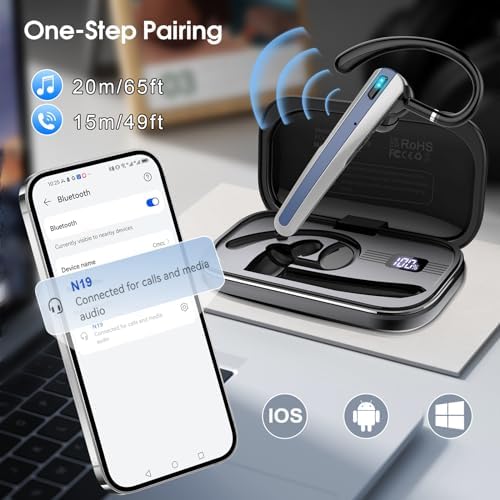 Multi-function Control: Bluetooth headsets are equipped with smart buttons that can easily implement functions such as call answering/hanging up, volume adjustment, and music playback. The rationally designed key layout and easy-to-operate buttons allow you to easily operate the headset in busy work scenarios and improve work efficiency. It is compatible with most Bluetooth devices (iOS/Android/Windows), ensuring you get stable connection and high-quality sound on different devices.