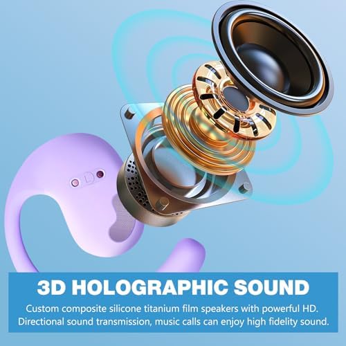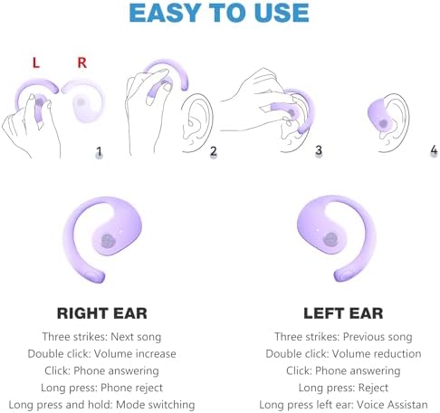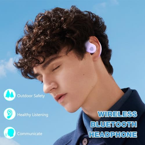 Bluetooth OWS Headphone, Wireless Bluetooth Earphone, Out of Ear Open Ear Headphones, Active Noise Hanging Ear Headset, Air Conduction Headphones for Running Cycling Work Long Playtime(Purple)