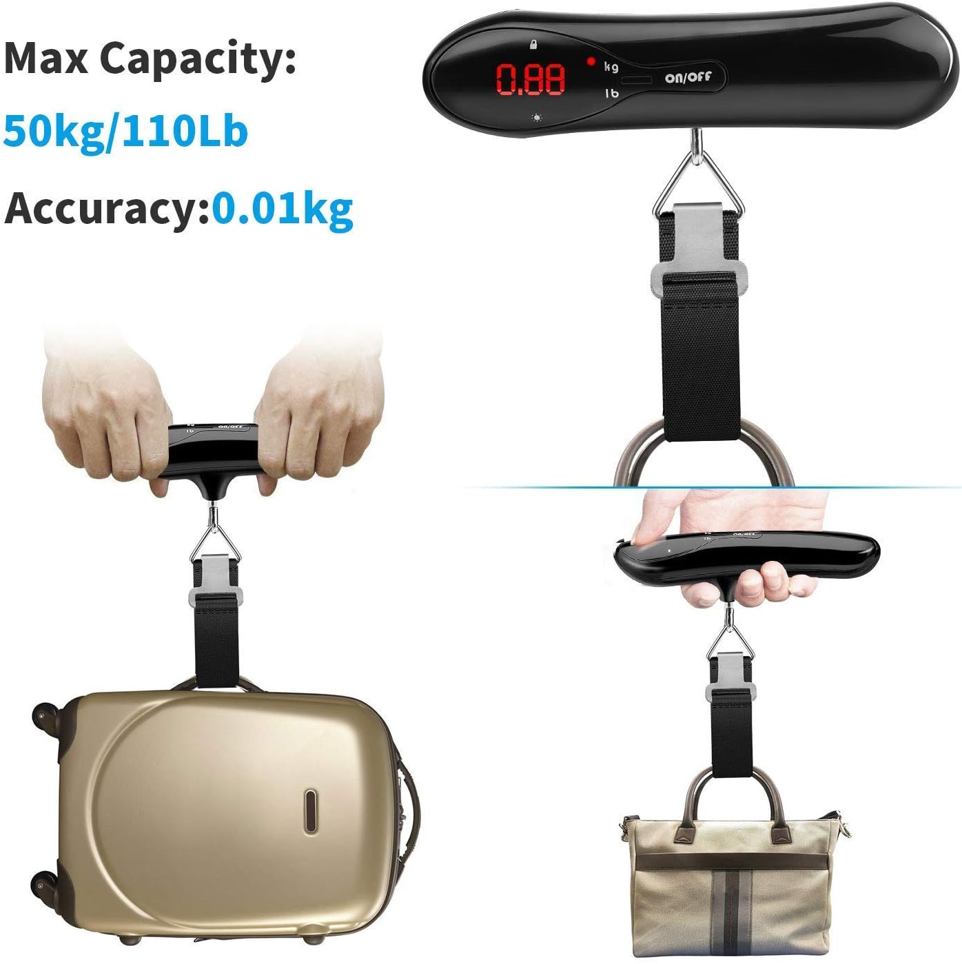 【Light Weight and Small】– The mini size and light weight (120g) designed, you could put this luggage scale in pocket, ideal for home, postal or travel use. No more unexpected overweight luggage or baggage fees again!