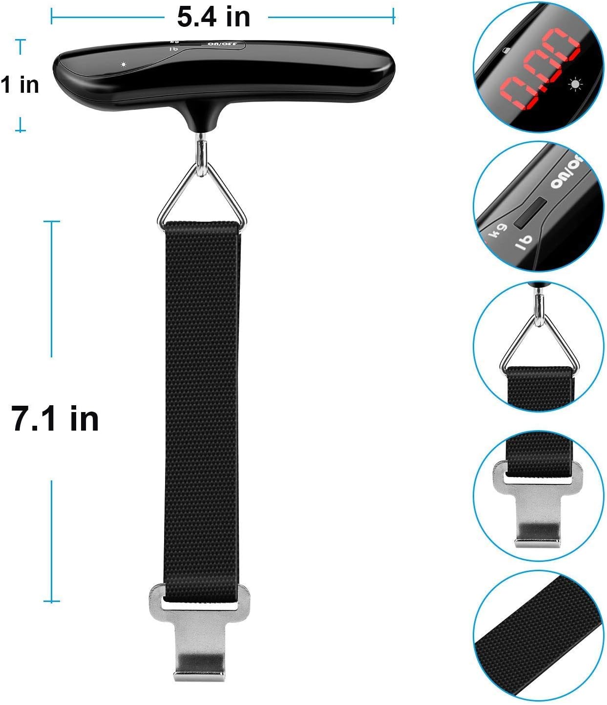 【Easy to Use】– T-shaped and ergonomic design makes it easy to weigh your luggage. Stainless steel hook together with sturdy woven band makes good looking and durability. High quality and stylish design guarantee long time usage.