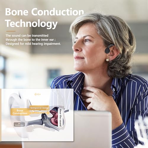 【Designed for People with Mild Hearing Impaired】Bone conduction headphones amplifier is designed for middle-aged people with mild hearing impairment, can easily solve the problem of mild hearing loss due to conductive hearing damage, highlighting the human voice,making communication more fluent and the call sound quality clearer; No need for external sound pickup, the volume can be adjusted independently according to the need.