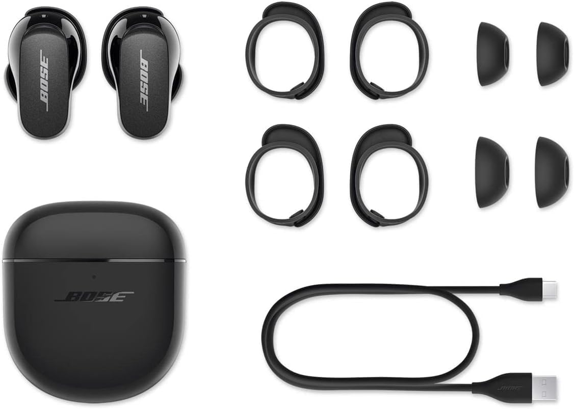 Bose QuietComfort Earbuds II are a sleek, versatile musical companion designed to fit you and everything you do. Engineered with pioneering CustomTune sound calibration technology, these wireless earbuds intelligently personalize the noise cancellation and sound performance to fit your ears, so you get proprietary active noise cancelling technology and deep, immersive sound with powerful bass whether you’re at home or on the go. To ensure all-day comfort and a secure fit, the earbuds come with the Bose Fit Kit that includes 3 different soft, silicone ear tips and 3 different stability bands to mix and match to find your best fit. With a compact, lightweight design, you will almost forget you’re wearing them. Easily control your music or adjust your preferred level of noise cancellation with the earbud’s simple touch controls. Phone calls sound crystal clear. Listen for up to 6 hours on a single charge. The charging case holds 3 additional 6-hour charges for a total of up to 24 hours of listening time. IPX4 rating for sweat and water resistance. Advanced Bluetooth 5.3 capability. In-App EQ control.