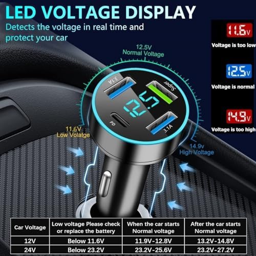 🔋【Voltage detection】:Car cigarette lighter adapter with LED digital display voltage meter, you can monitor and display the voltage of the car battery in real time,to master the health of the car’s electrical system,let you take timely measures to avoid possible breakdowns during driving.Help you drive safely and discharge safety hazards