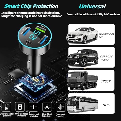 🛠️【Smart chip protection】:Our compact charger has a built-in upgraded smart master core chip that contains a power management chip and a fast charging protocol chip.It can provide protection against over voltage,over current,over temperature and over power short circuit.It can also intelligently identify electronic devices and adjust the current output to ensure your safe charging while driving