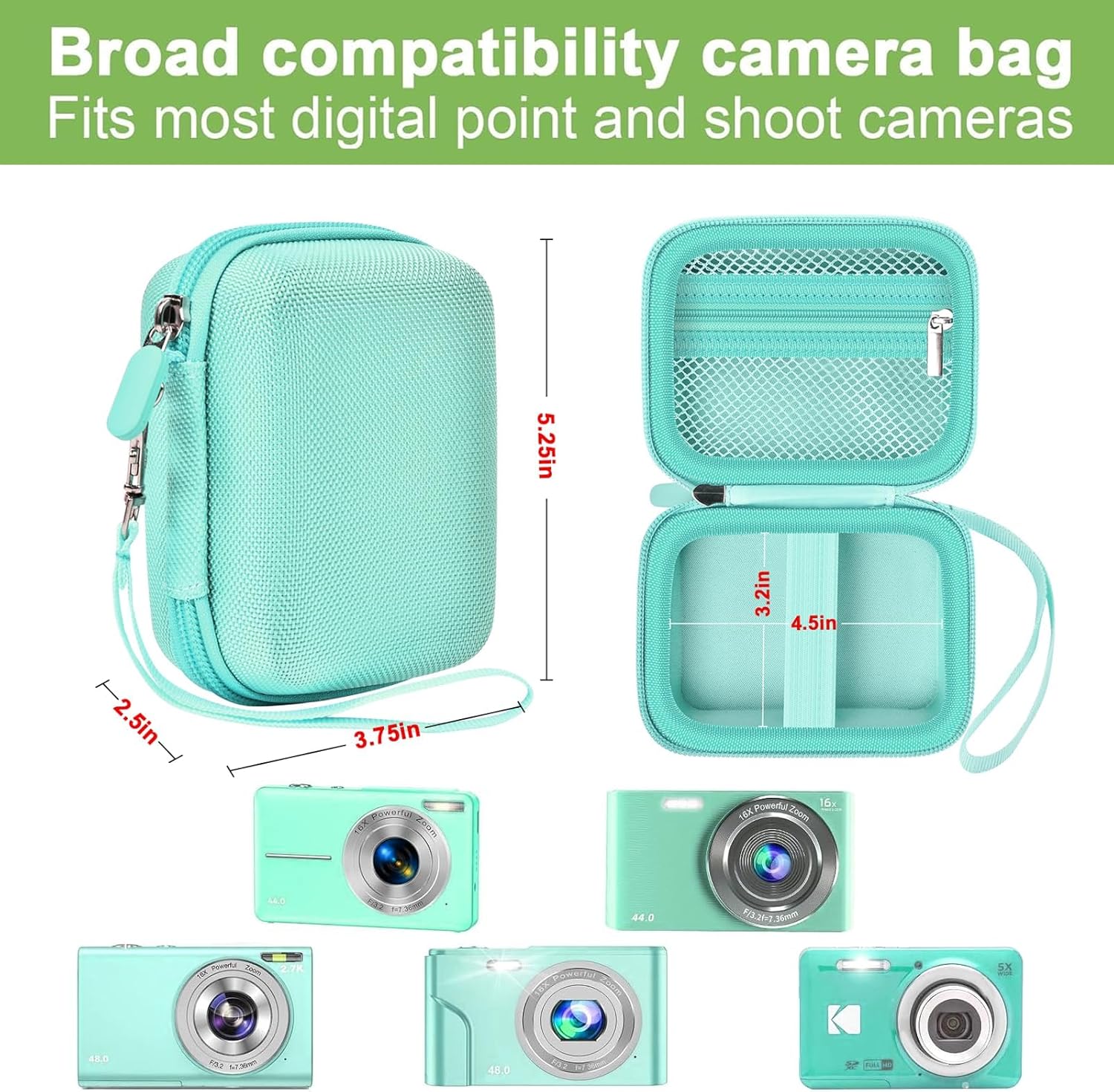 Broad compatibility camera bag- Digital camera case compatible with CAMKORY/ for VAHOIALD/ for IWEUKJLO/ for KODAK/ for Nsoela/ for Saneen/ for Animdreti/ for Polaroid/ for Hauyince/ for BEVLXNIV/ for Zostuic/ for VJIANGER/ for Lecran/ for Animdreti/ for BEVLXNIV digital camera. Keep your kids camera and accessories organized in one place, providing convenience and functioning as a camera kit! (Note: case only, digital cameras and compact cameras accessories are not included)