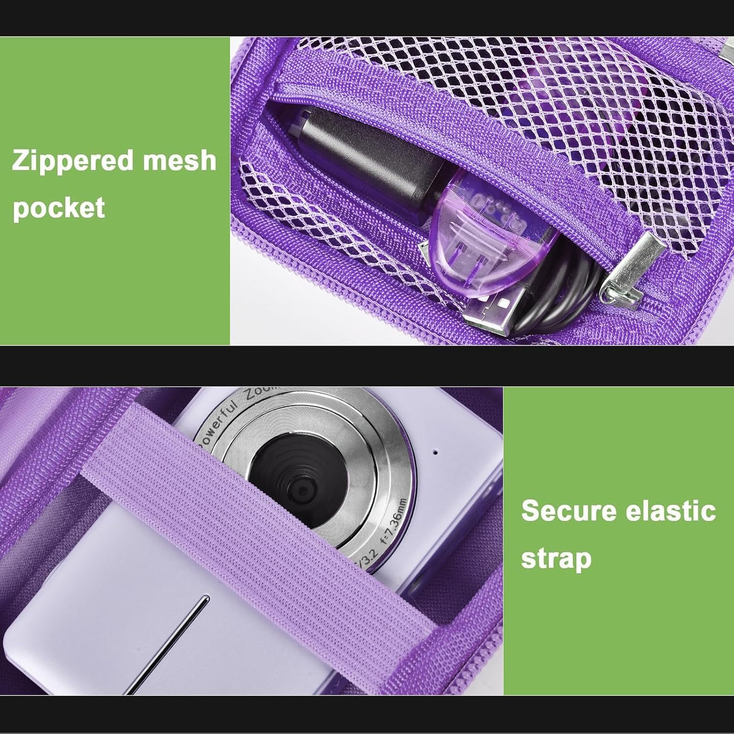 Spacious zippered mesh pocket- Utilize the practical zippered mesh pocket to store various video camera accessories like chargers, batteries, SD cards, SD Card Reader and data cables. Stay organized, keeping all kids digital camera essentials within easy reach.