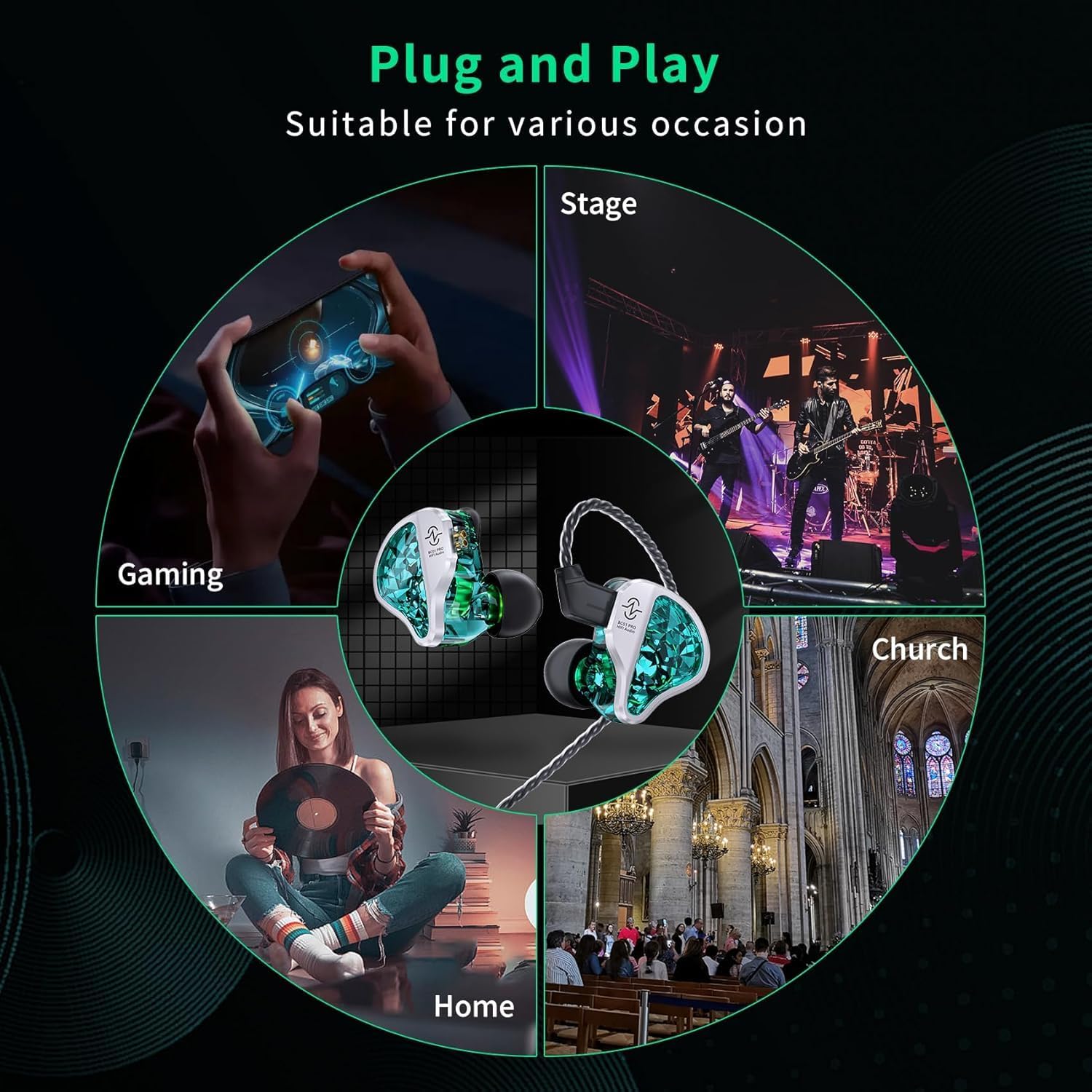 Plug and Play, Enjoy HIFI Life Anywhere: Wired headphones, plug and play, achieving true zero-latency. and the noise isolation is excellent, blocking out distractions so you can focus on the game or music. so the iem earphones suitable for various occasion: gaming, stage, church, studio work, band, meetings, home