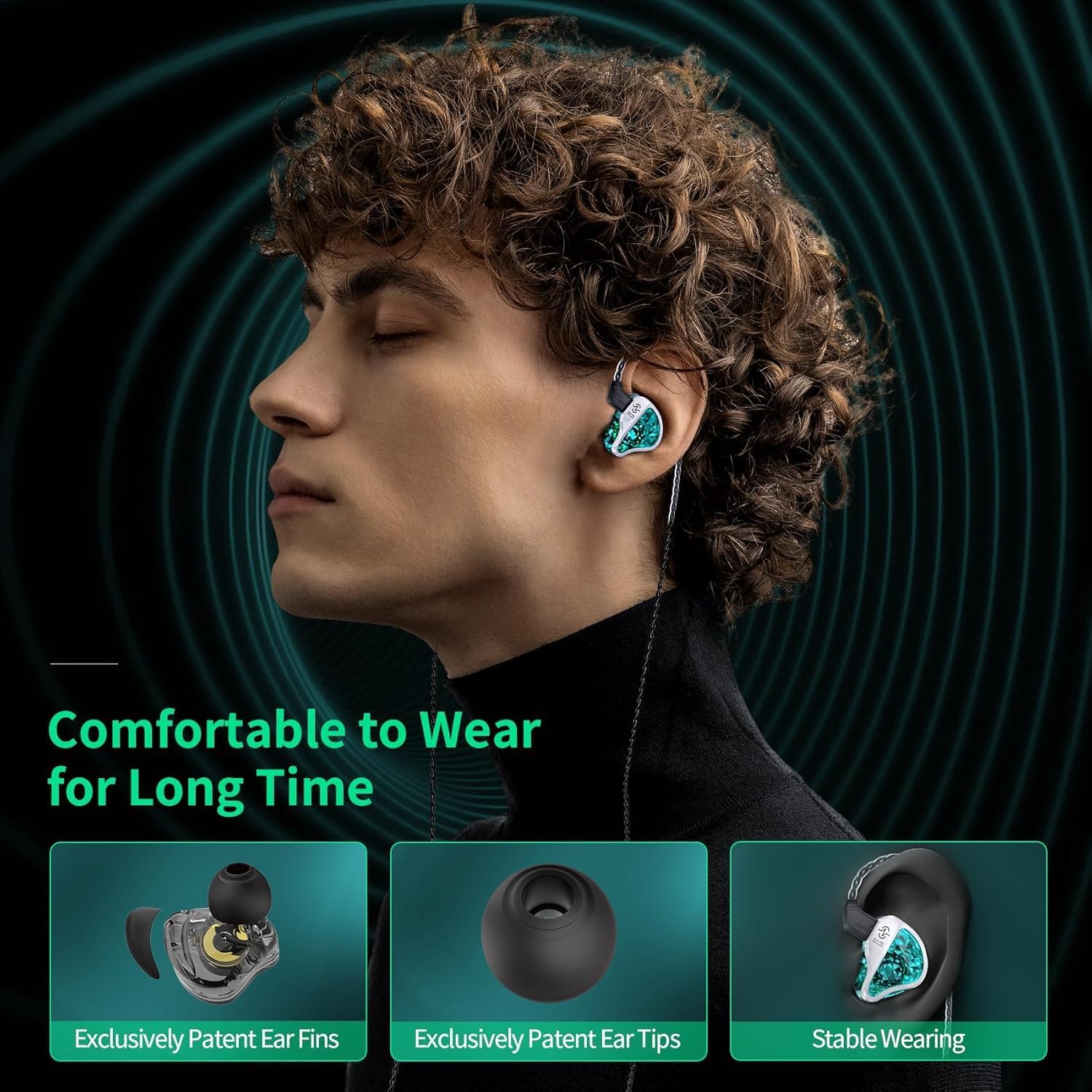 CCZ BC01 Pro Wired Earbuds with Exclusively Patent Ear Fins and Ear tips, Comfortable to Wear: soft silicone ear fins is added to the rear of bc01-pro iem cavity, providing more comfortable, stable, light wearing experience. Groove design at earphones ear tips brings more stereo sound, enhancing details and sound stage. The fit is comfortable and secure, even during long gaming sessions