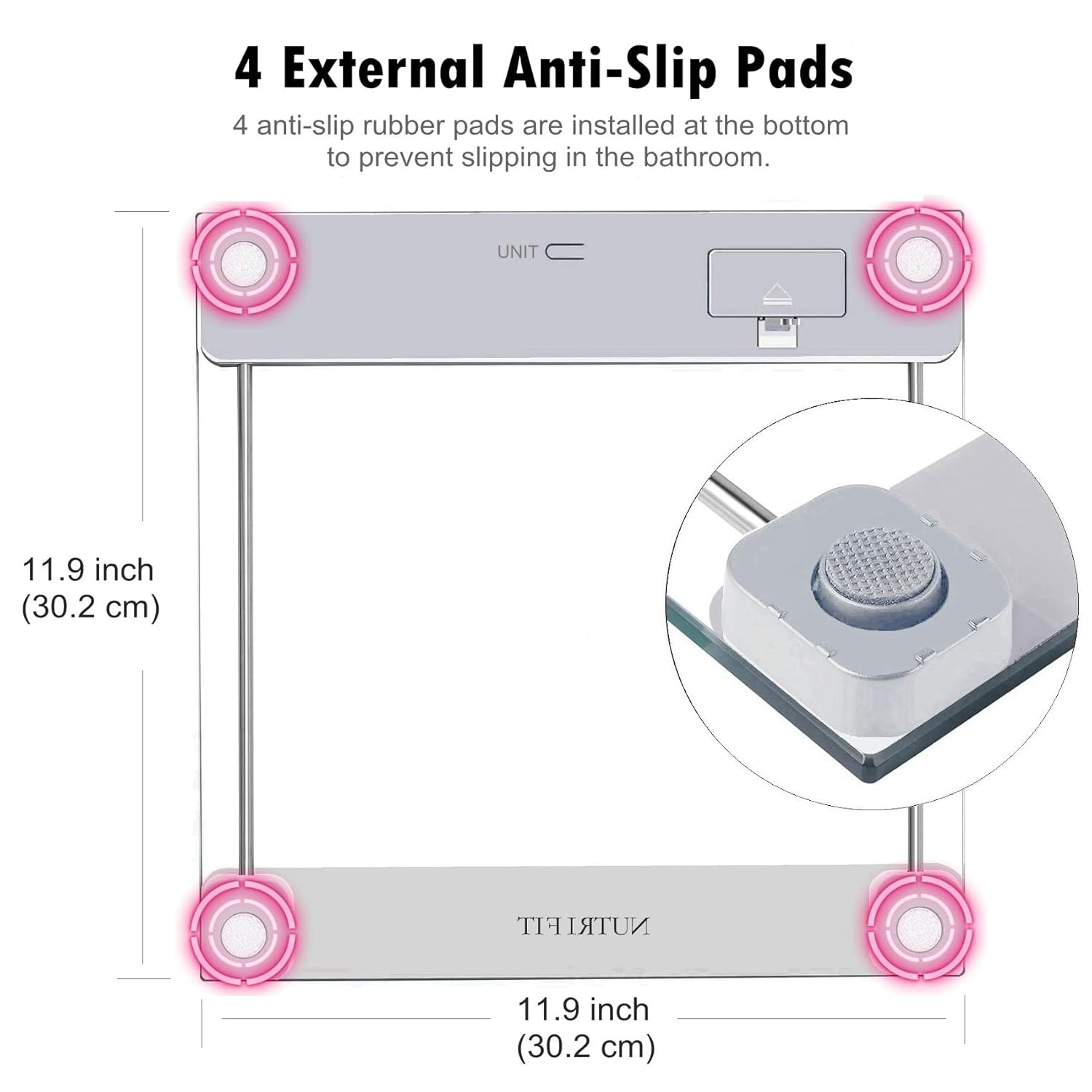 Durable,Sturdy & Slim Platform-6mm thick tempered glass provides exceptional sturdiness; 11.9″x11.9″ weighing platform is comfortably accommodating and suitable for everyone to use.