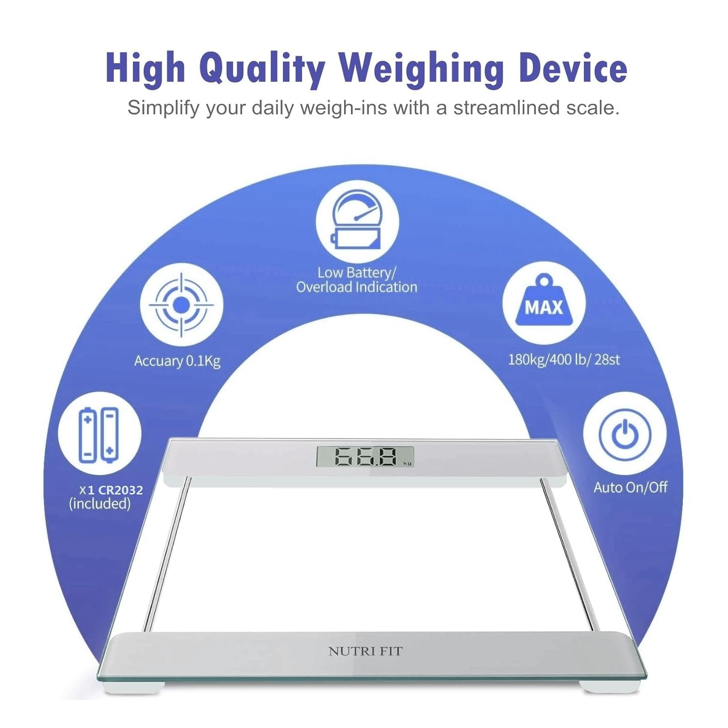What you will get: 1×Body Weight Scale, 1×CR2032 Battery, 1×User Guide, lifetime Support by NUTRI FIT