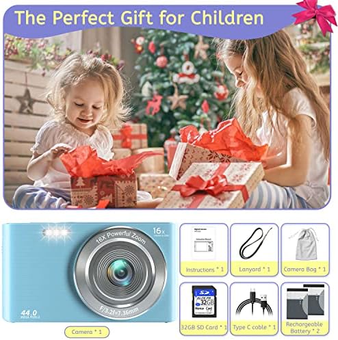 【4K & 44MP Digital Camera】4K mini camera for kids girls boys adults has 4k video resolution and 44MP image resolution, and support 16X digital zoom, helping you capture and record the most exciting memorable moments with high-quality images or videos.