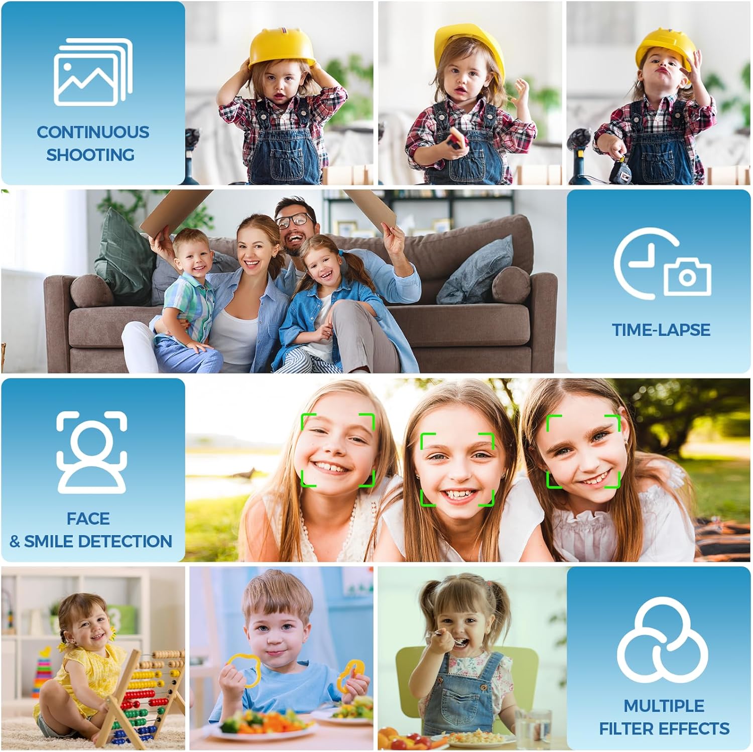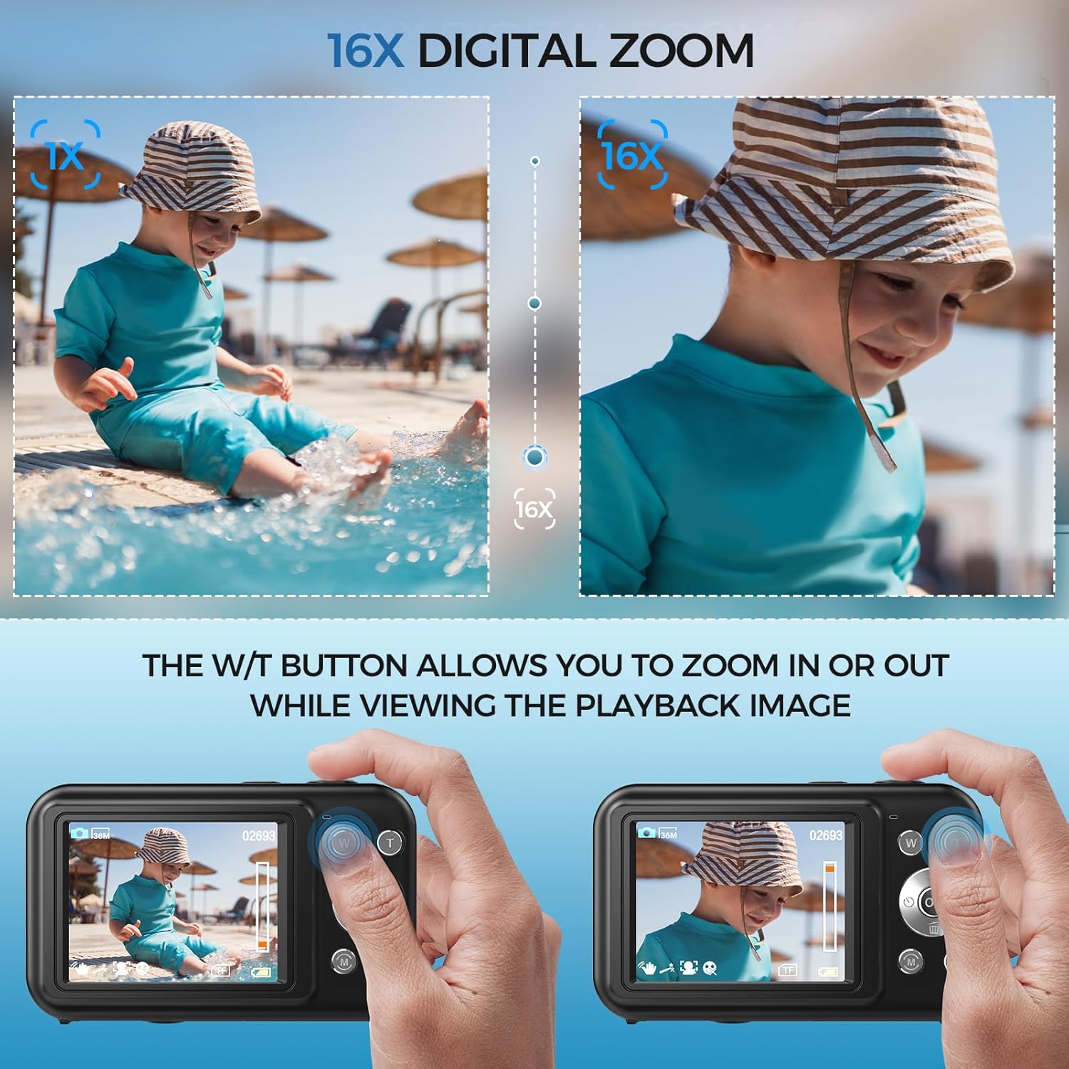 【1080P & FILL LIGHT can help you record happy time.】- The digital camera supports 1080P HD recording, features a 2.4-inch IPS HD display, and includes a fill light to assist you in record happy time with friends, family at life and trips even in low light conditions. It is equipped with a built-in microphone, which can be used as a webcam to share wonderful life, so that beginners and children can use the camera to capture beautiful moments.