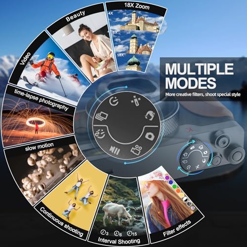 【18X Great Cameras for Photography】The vlogging camera supports 18X digital zoom, video pause, recording while charging, loop recording, continuous shooting, beauty function and selfie. Adopting the latest upgraded chip to ensure higher definition and more realistic camera images. Especially the beauty feature, it can help you catch the attention of others and win more likes on social media platforms at once.This is the best gift for friends and family.