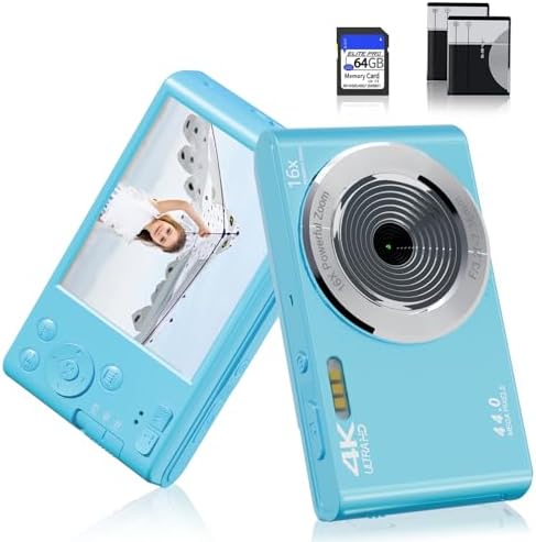 🎁【Mini & Easy to Use Camera】This digital camera compact is smaller than a normal smart phone so that you can put it in your pocket. Simple to set up and easy to operate, just press the button to capture the moment. Comes with a lanyard for easy portability and mobility. Equipped with 2 rechargeable batteries and an auto shut-off setting, there’s no need to worry about running out of power, perfect for holiday trips and camping.
