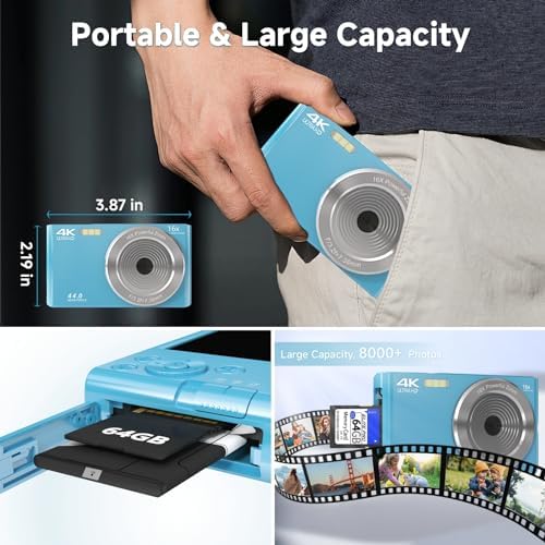 With 4K FHD video resolution and 44 MP photo pixels, this digital camera 4K ensures high-quality image clarity. And our high-definition digital camera also features automatic focus, eliminating the need for manual adjustment, allowing you to effortlessly capture crisp images.