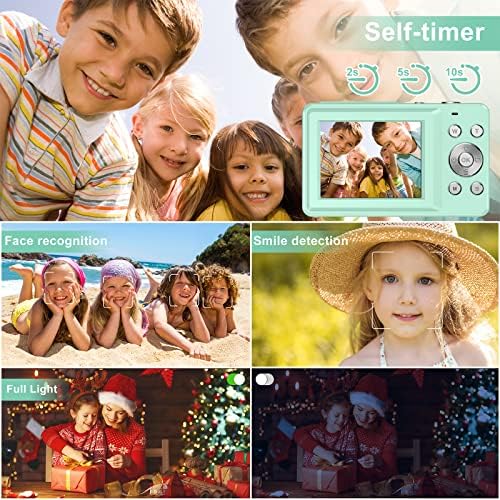 This kids camera has extremely high cost-efficiency with retro appearance, equipped with IPS 2.4 Inch LCD screen, FHD 1080P video resolution, 44.0 megapixels and portable design, helping you capture and record the most exciting memorable moments with high-quality images or videos.Equipped with anti-shake, face recognition, smile detection, continuous shooting, self-timer, and flexible capturing the shooting subject.Recording the shooting time, so that you can look it back, you can also choose that the date stamp is on or off.