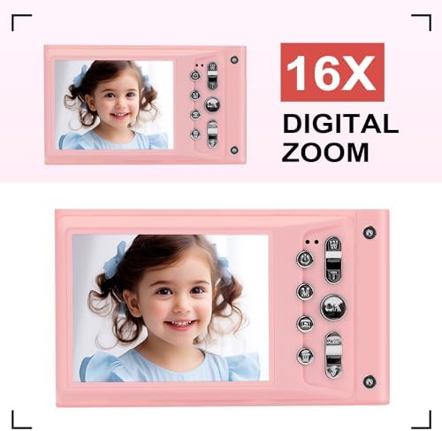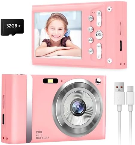 Digital Camera, FHD 1080P Kids Camera with 32GB Card, Digital Point and Shoot Cameras with 16X Zoom Anti Shake, 48MP 2.8 Inch LCD Screen, Gift for Girls Kids