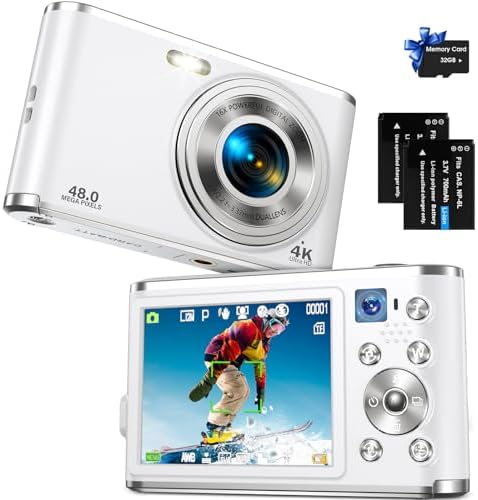 🎁[EASY TO USE and SURPRISE PACKAGE]- This 4k video camera comes with a 32G TF card, Adapter and 2 batteries can meet your needs for a long time and large-capacity shooting. Simple setup is easy to operate and control, making it a great gift for kids, teens, friends, family members, beginners.In addition,we provide 1 year worry-free If you have any problem when using the digital camera, please feel free to contact us, we will reply you within 24 hours.