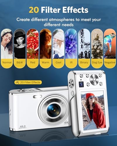📸[AUTOFOCUS DUAL-CAMERA]- Innovative dual-camera design! Switch to the front camera for easy selfies with just one click, and utilize the rear camera for creative video, easily unlocking various shooting skills.The compact digital camera supports a powerful focusing function to ensure precise focus of the front and rear lenses, allowing you to easily capture clear and wonderful moments. Our 4k autofocus digital camera perfect as a Christmas or birthday gift!