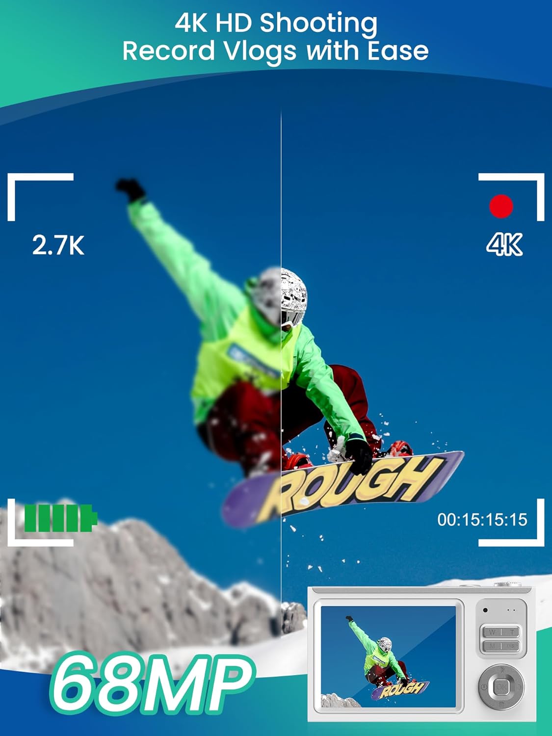 Warm Tips:This is a general camera for beginners, teenagers and non-professionals with low needs, and is not suitable for professionals who have high requirements for photography, such as requiring the same image quality and video quality as professional cameras.