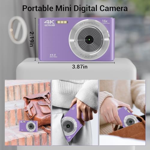 Digital Camera for Teens, FHD 4K 44MP Digital Camera Purple with 64GB SD Card 16X Digital Zoom, Cameras for Photography Compact Point and Shoot Camera for Teen Boys Girls Kids Camera Digital