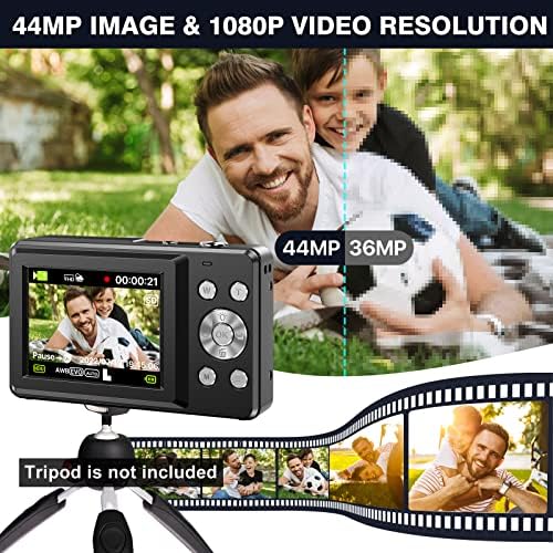 [1080P 44MP FHD Digital Camera] This kids camera featured with 1080P FHD video resolution,44MP (max) picture pixel, largely enhancing image clarity, compare with other kid cameras. This children mini camera supports 16X digital zoom, you can zoom in or out images by using the W/T button. The pause function allows you to pause when record or playback videos. And the built-in fill light helps you to take quality pictures in the dark.
