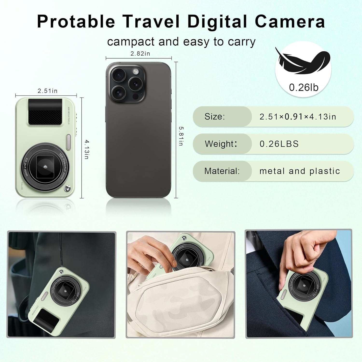 Warranty & What You Get: We offer a two-year satisfactory warranty. When you encounter any problems, click on the store to ask questions and our staff will quickly answer you! The small camera for teens comes with a 32GB TF card x1, Type-C cable x1, Card reader x1, Lanyard x1, User Manual x1, Storage bag x1.