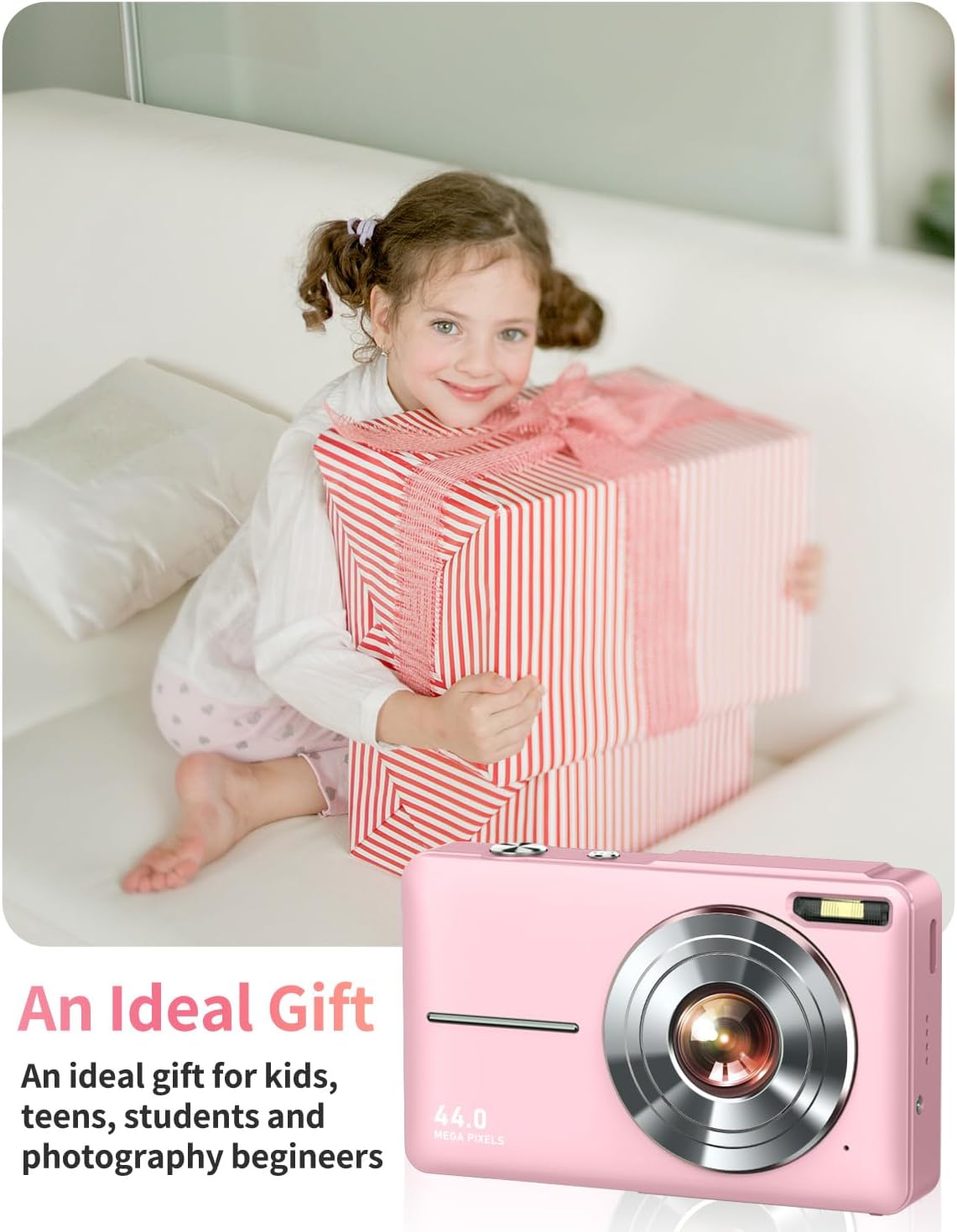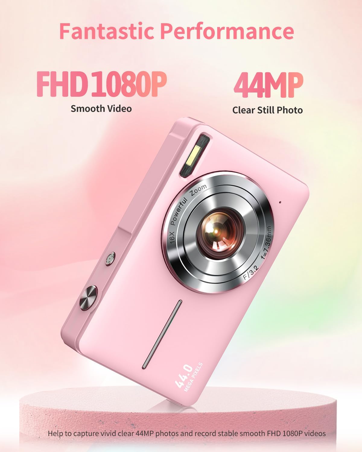 NICE STARTER DIGITAL CAMERA – The digital camera captures vivid clear 44MP Images and records stable smooth FHD 1080P resolution videos with a new upgraded high-level CMOS sensor and anti-shake function. Point and one second to press the shutter, you will gain high-clarity photos with natural colors and details without complicated manual settings, super easy for starters and kids.