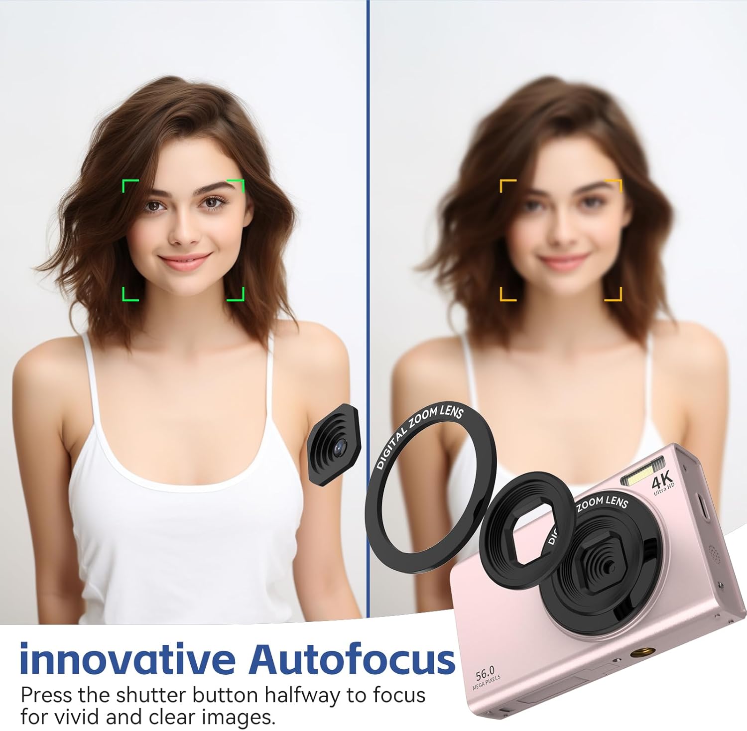 [Autofocus & 16x Digital Zoom]:With advanced autofocus technology and a 16x digital zoom, this camera ensures that every shot is sharp and in focus, while also providing the versatility to zoom in on subjects from a distance without compromising image quality