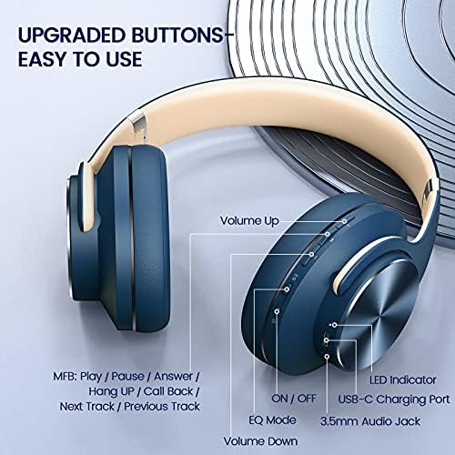 ♪【Bluetooth 5.0 & Built-in Microphone】 With two 40mm large bezel driver units and Bluetooth 5.0 technology, these Headphones Bluetooth offer more stable transmission speed, lower latency and better audio output. The Headphones can give you wonderful music enjoyment and the built-in microphone of the bluetooth Headphones enables a hands-free clear phone communication.