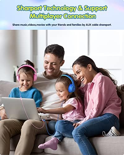【With Shareport, Share the Moments】No splitter required! Kids can plug another headphone into the sharing jack to share audio with friends or family without splitters or special cables. The shared jack is located on the aux cable instead of the headphone, making it more flexible to use.