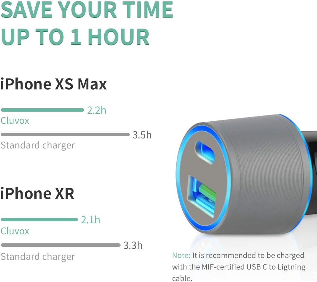 Small but Powerful: High speed car charger perfectly charge 2 devices in 20W(max) and 18W each port. No more fighting with your passenger for the charger in the car
