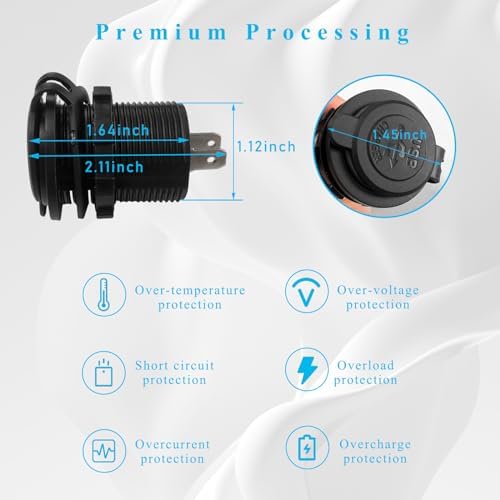 【Widely Used】: It is a universal product that mounts to your vehicle to provide assistance. Easily installs on your car, boat, marine, motorcycle, ATV, RV, camper, tractor, truck, golf cart and more. Four colors of light ring for your choice, the light helps you to find the charging port easily even in the dark.