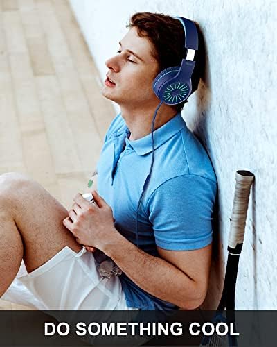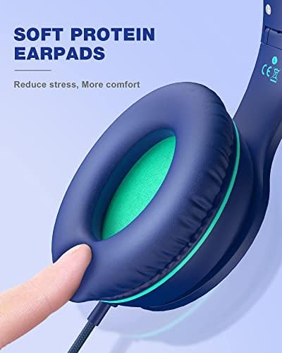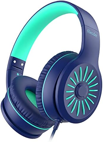 ELECDER i45 On-Ear Headphones with Microphone – Foldable Stereo Bass, Portable Wired Headphones with No-Tangle 1.5M Cord, 3.5MM Jack for School/Kids/Teens/Smartphones/Travel/Tablet – Blue