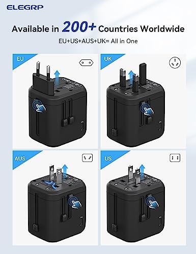 ✅【International Travel Adapter for Travel】 Our all-in-one adapter has 4 different plugs built in which cover over 200 countries: Type C Plug: Most of Europe, France, Italy, Spain, Iceland, Greece, Israel, South Korea, Brazil, Peru, Argentina, Chile; Type G plug: UK, Ireland, Malaysia, Hongkong, Dubai; Type A Plug: America, Canada, Mexico, Thailand, Japan, Taiwan, China (Mainland); Type I plug: Australia, New Zealand, China and more. AC outlet accepts devices from the US, EU, UK, AU, and China.