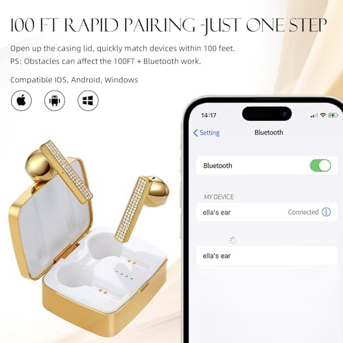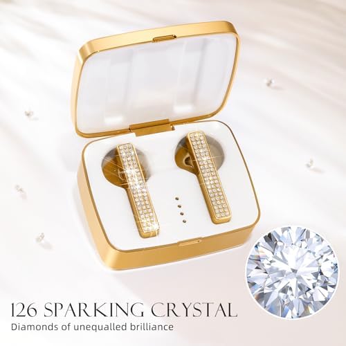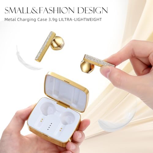 【126 Diamond Embedded Wireless Bluetooth Earphones】- make each pair of earphones unique like collectible art, 3.9g will not add burden to the ears, D-grade diamonds are purely handpolished to add fashion and luxury, metal charging box protects the earphones, equipped with jewelry gift packaging, whether it’s Valentine’s Day, Thanksgiving, Christmas, birthday or other important occasions, directly give it as a gift to your friends and family