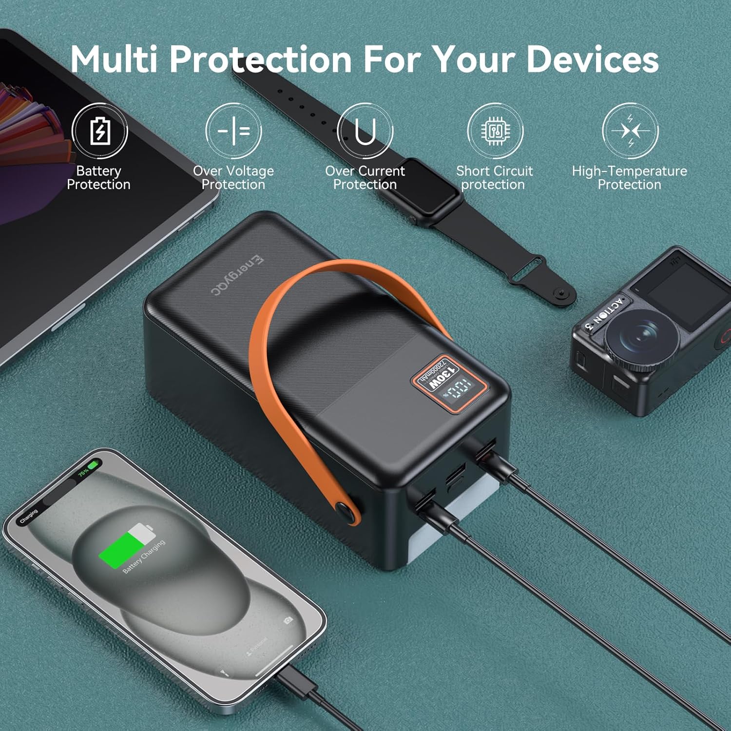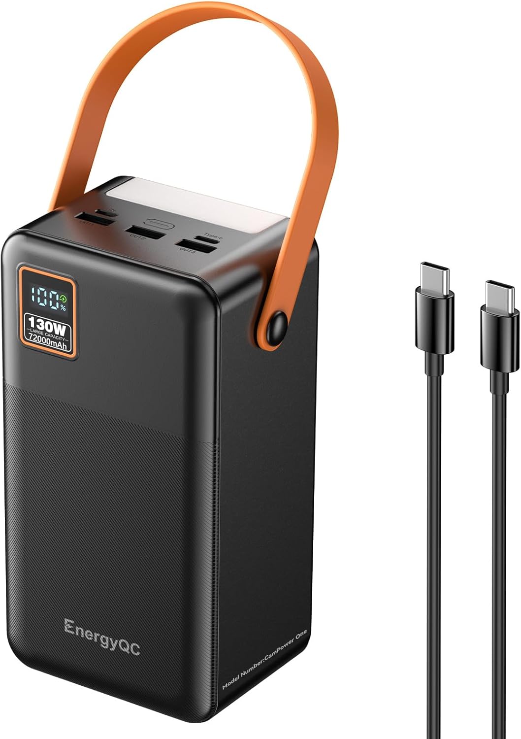 EnergyQC Power Bank, 72000mAh Portable Power Station, 130W Max Battery Pack, 266.4Wh Fast Charging Compatible with Laptop MacBook iPhone Samsung for Outdoors Camping Travel
